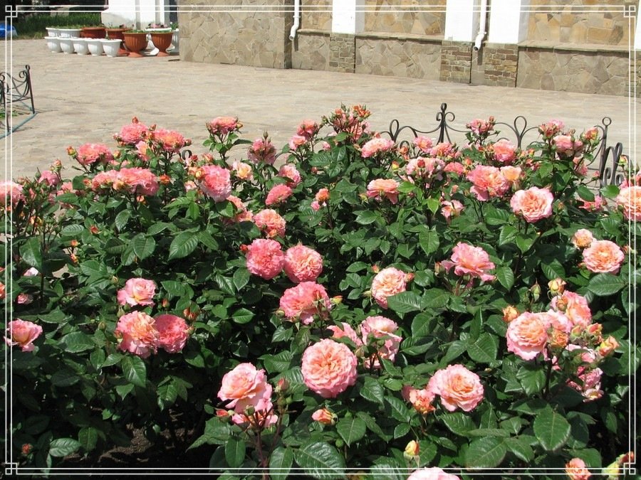 U mnie ta róża ma ponad 2 m rozpiętość ponad metr kwiaty dochodzą do 20 cm