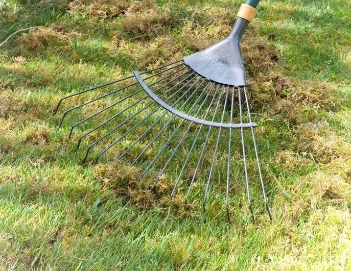 Jeśli na trawniku znajdują się martwe fragmenty, warto delikatnie wygrabić je, aby pobudzić wzrost nowej trawy.