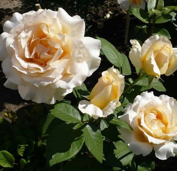 Oprócz nich posadziłam też tworzące kwiatostany wielokwiatowe róże ogrodowe, o drobniejszych kwiatach, charakteryzujące się bujnym i zdrowym ulistnieniem, mocniej się krzewiące, odpowiednie na kwietniki i rabaty.