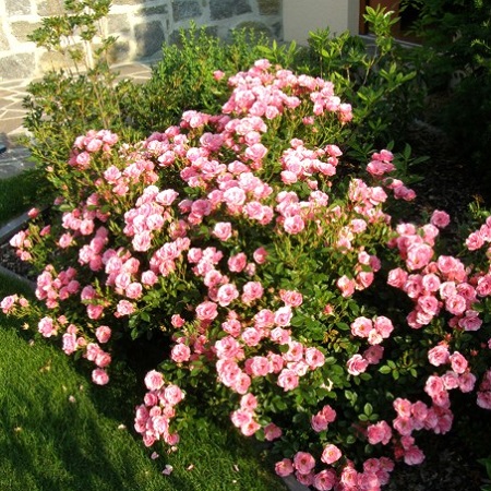 Dzięki intensywnej barwie tego gatunku róż miejsce nabrało charakteru. Róże te faktycznie są niemal bezobsługowe i odporne na choroby oraz na przemarzanie, a do tego bardzo długo i obficie kwitną. Posadzone dość blisko budynku po południowo-zachodniej stronie. Podlewane linią kroplującą. Przed posadzeniem do dołków sypałam suszony obornik, teraz przed kwitnieniem, raz w sezonie dodaję nawozu wieloskładnikowego. Jestem z nich bardzo zadowolona, na pewno nie będą to moje ostatnie róże w ogrodzie.