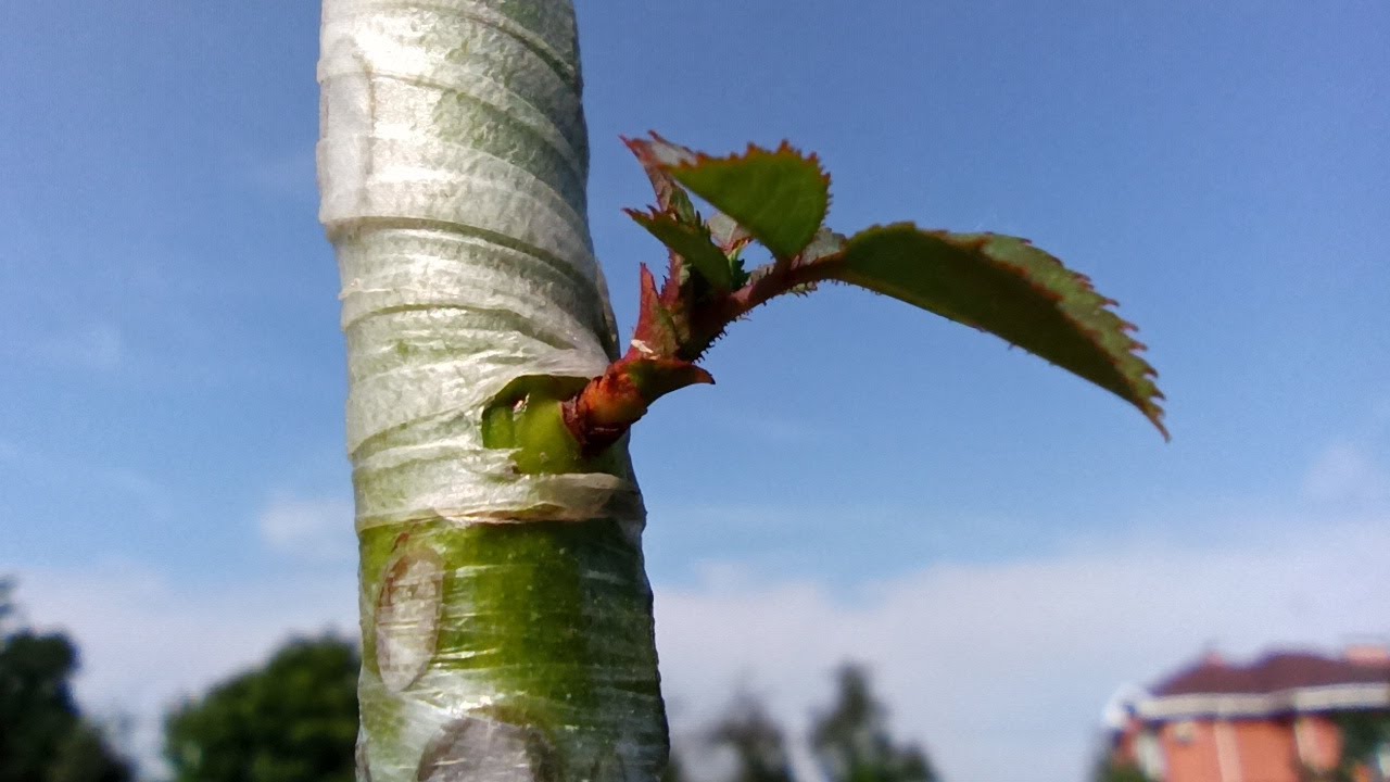 Po kilku tygodniach, jeśli szczepienie się przyjęło, opaska jest usuwana, a podkładka powyżej miejsca szczepienia jest przycinana, aby nowa odmiana mogła się rozwijać.