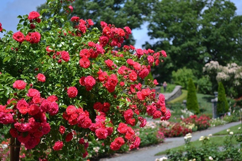 Sadzenie: Róże parkowe należy sadzić w rozstawie 50-100 cm, a pnące przy podporach lub ogrodzeniach.