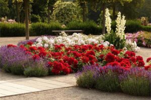 Rabata mieszana z różami – jak połączyć królową ogrodu z innymi roślinami