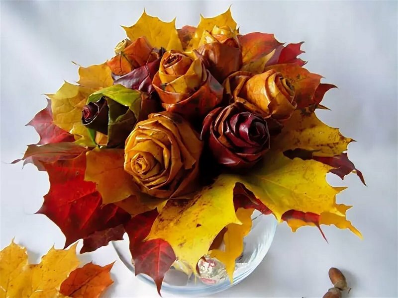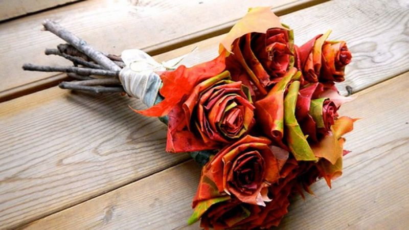 jakie wtedy pojawiają się wśród roślin. To cała seria ciepłych barw od żółci i pomarańczy, poprzez czerwienie i zielenie. Spadające z drzew liście, ostatnie kwiaty, żołędzie, kasztany czy gałązki. Wszystko to może nam posłużyć za darmowy materiał do tworzenia rękodzielniczych dzieł sztuki. Przyroda hojną ręką oferuje nam dary, które można wykorzystać do ozdabiania domu, jako materiał do twórczej pracy. Trzeba tylko się po to wszystko schylić. Opiszemy teraz, do czego przykładowo może posłużyć nam taki jesienny bukiecik kolorowych liści. Możemy wykorzystać go do zrobienia różnych ozdób, w tym szczególnie do czegoś tak urokliwego, jak róże z liści. Jak to zrobić i o co w tym w ogóle chodzi? Przeczytajcie, a się dowiecie!