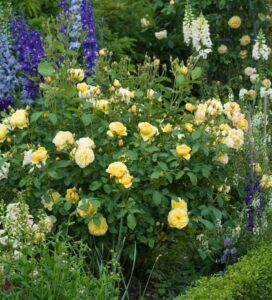 Charakterystyka: Angielska róża Davida Austina o pięknych, żółtych kwiatach i delikatnym zapachu herbaty. Kwitnie powtarzająco, co daje długi okres dekoracyjności.