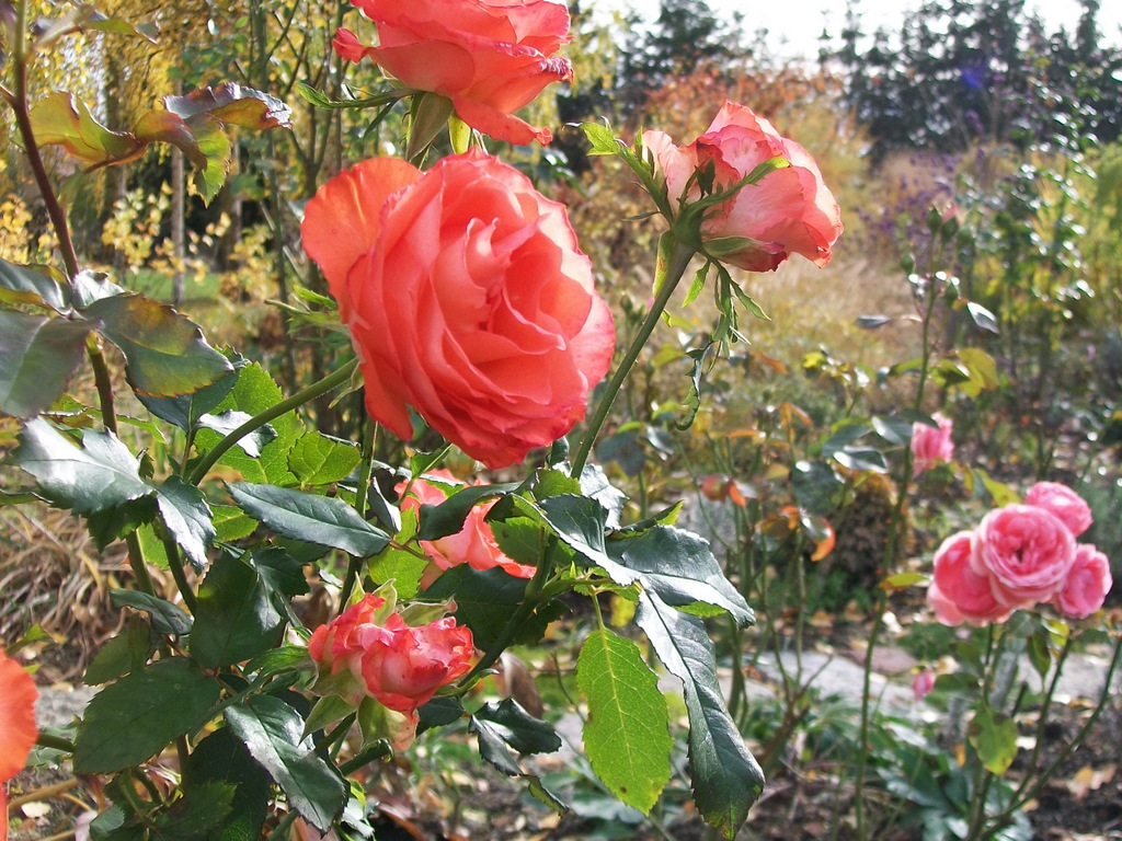 pielęgnacja różSzczególnym sentymentem darzę też róże z grupy okrywowych, a zwłaszcza róże okrywowe The Fairy. Bezproblemowe, powtarzające kwitnienie, zachwycające burzą kwiatów aż do przymrozków. Atrakcyjnie wyglądają tez kwiatostany zaschnięte, przyprószone śniegiem. Doskonale komponują się z bylinami i pnączami. Taki duet jest moim ulubionym w ogrodzie. różana rabataNiemniejszą sympatią darzę Red Fairy – cudowna różyczka z drobnymi kwiatkami, doskonale radząca sobie i znosząca kapryśną, deszczową aurę. Jej wdzięczne kwiatki  w takich okolicznościach nie tracą na urodzie i zachwycają swoim kwitnieniem od czerwca do przymrozków. Czyż nie o takie piękności, odporne, bezproblemowe chodzi nam amatorom, miłośnikom róż?