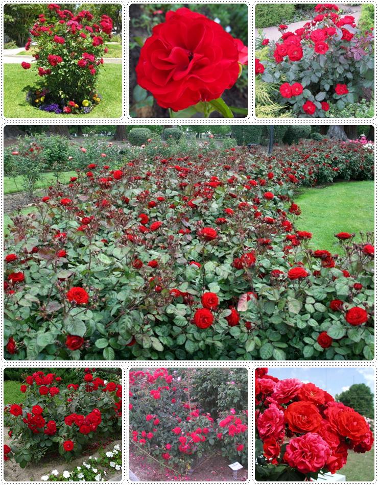 To obficie kwitnące róże o rozetkowych, około 8 centymetrowych kwiatach. W bardzo czystym czerwonym kolorze. Po pełnym rozwinięciu się kwiatu ukazuje się nam w centrum pęczek jaskrawo - żółtych pręcików. Kwitnie w ilościach hurtowych, w dużych bukietach po 10 - 30 szt. Kwiaty są bardzo trwałe. Dodatkowo nie wypalają się i nie rudzieją na słońcu, co sprawia, że jest to odmiana szeroko rozpowszechniona w krajach o gorącym klimacie. Kwitnie w zasadzie do pierwszych mrozów. Aromat wyczuwalny. Odznacza się regularnym pokrojem oraz bardzo kształtnymi liśćmi w wyraźnie czerwonawym odcieniu. Krzak gęsty, równomierny. W niekorzystne lata wymaga ochrony przed chorobami grzybowymi. Wyśmienicie nadaje się do klombów, obrzeży. Dobrze rośnie w pojemnikach.