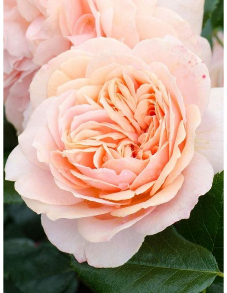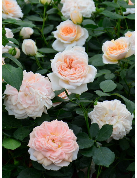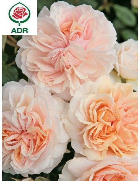 Stylowa floribunda, o przepięknej, subtelnej barwie. Płatki zewnętrzne niemalże białe, wewnętrzne natomiast w zależności od temperatury i światła przybierają kolor delikatnej brzoskwini bądź łagodnego różu. Kwiaty średnicy 7 cm, bardzo romantyczne, w formie rozety, pełne, ściśle wypełnione ( ok. 70 sztuk płatków ). Rozkwita dużymi gronami nieco później, jednak wynagradza swoje opóźnienie nieustającym i obfitym kwitnieniem w przeciągu sezonu. Kwiaty długo utrzymują się na pędach, nie straszny im deszcz. Proces kwitnienia świetnie wspomaga usuwanie przekwitniętych kwiatostanów. Wydziela łagodną, cudowną woń. Dodatkową ozdobą Garden Of Roses róży rabatowej są średniej wielkości, ciemnozielone, błyszczące listki, ulokowane ściśle na przeciętnie kolczastych, sztywnych pędach. Podczas obfitego kwitnienia pędy delikatnie uginają się pod ciężarem kwiatów. Bardzo kompaktowy krzew o wyprostowanym pokroju dorastający do 50 cm wysokości i 40 cm szerokości. Odmiana ta uzyskała certyfikat ADR, który potwierdza zdrowotność krzaczka. Na okres jesienno zimowy wskazany kopczyk.
