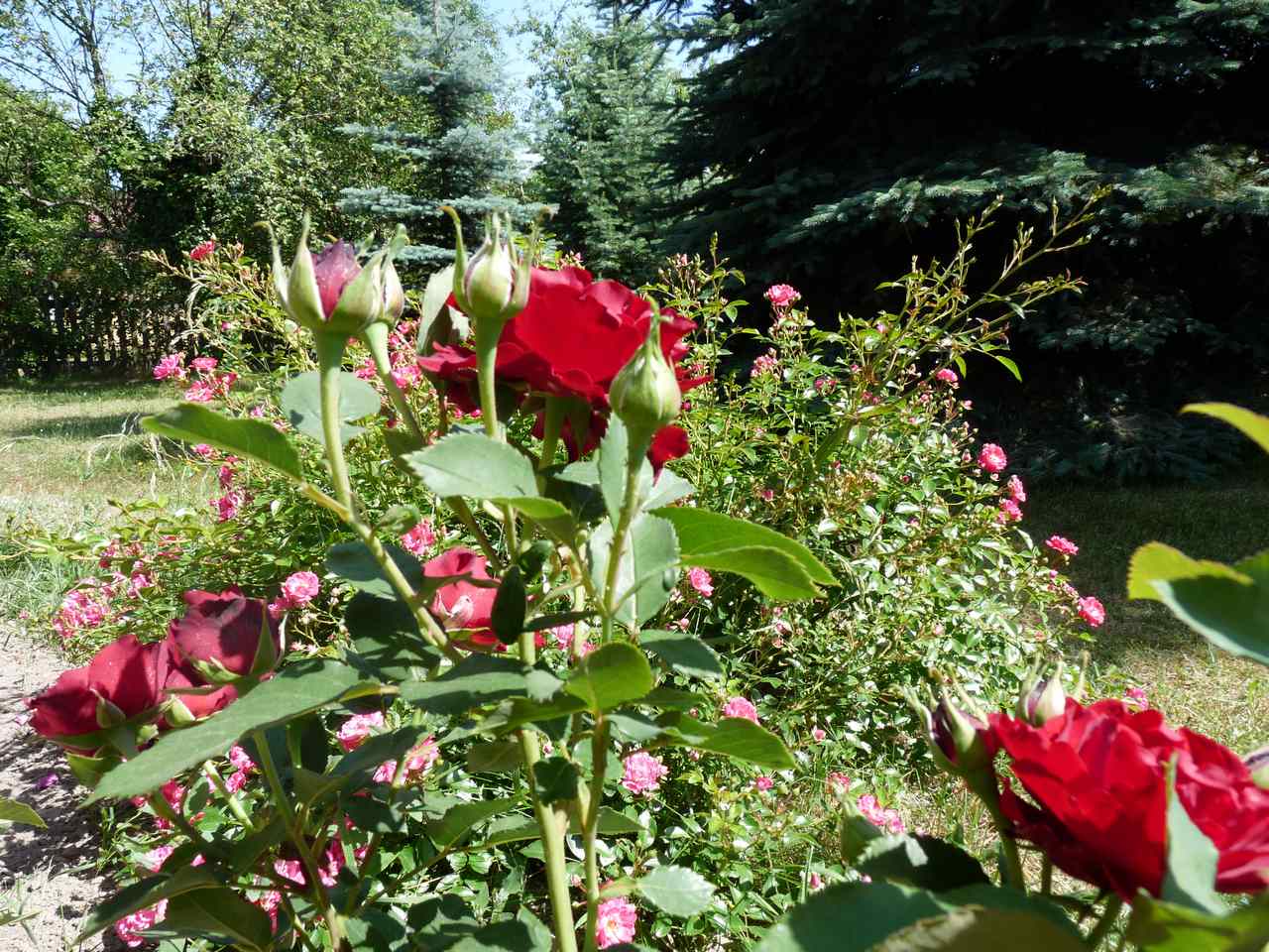 Część moich róż odziedziczyłam po poprzedniej właścicielce ogrodu. Niestety były w dość kiepskiej formie , porozsadzane po całej działce…przesadziłam te ” bidy ” na jedną rabatę, którą założyłam pod oknem sypialni, podsypałam obornika, przycięłam i teraz co roku odwdzięczają się bogatym kwitnieniem i obłędnym zapachem !