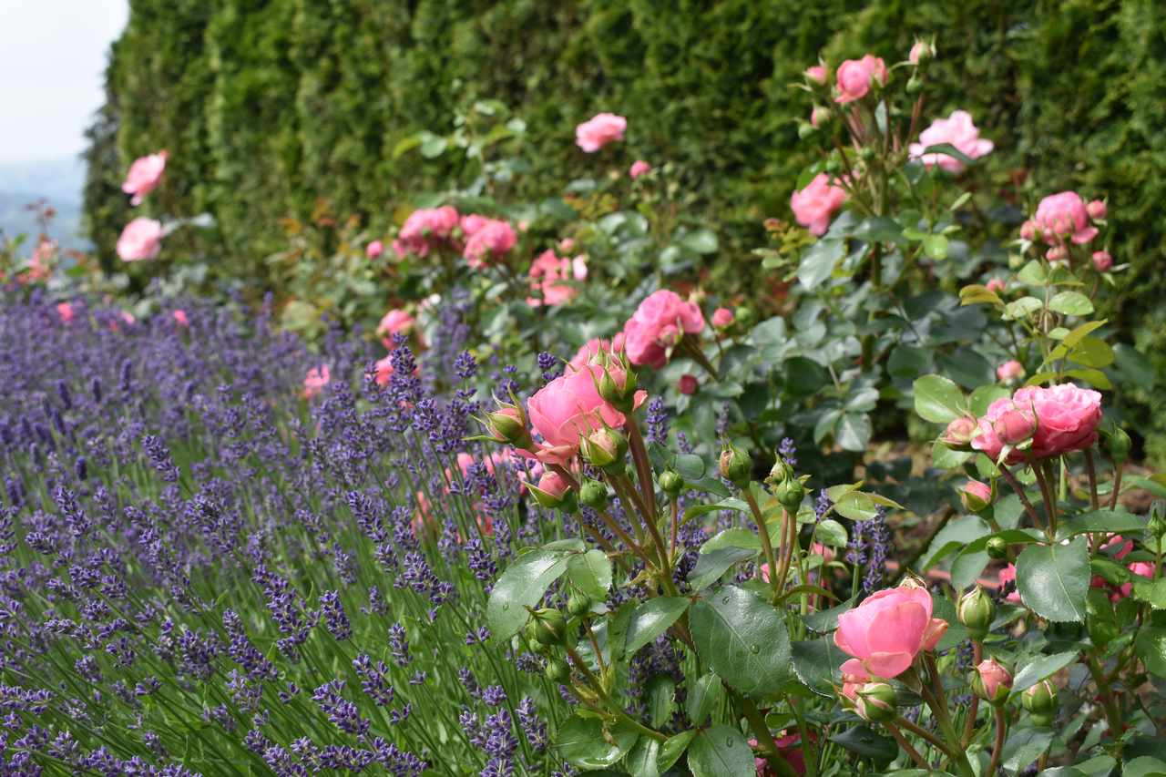 Drugi – opiera się na kompozycji róż rabatowych o nazwie “Leonardo da Vinci” oraz “Queen Elizabeth”, róże wkomponowane we wrzosy, w tle krzewy, drzewka ozdobne.