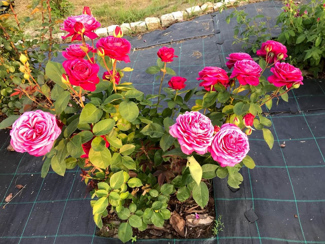 Na zdjęciach pokazałam proces tworzenie rozarium, zakładanie kwater i rozciągania folii (aby nie trzeba pielić) proces sadzenia pierwszych roślin i efekt obecny. Na końcowych zdjęciach są róże, które “ukradł mi mąż” i posadził przy “swoich” winogronach, aby i “u niego” było ładnie…