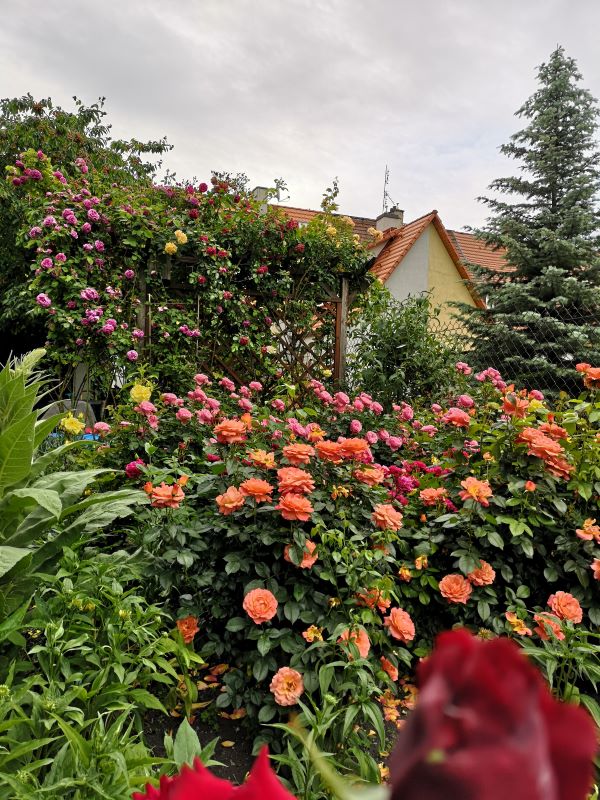 Uprawą róż interesuję się od około 10 lat. Początkowo ograniczałem się do zakupu gotowych sadzonek i ich pielęgnacji, lecz z czasem opanowałem również szczepienie odmian szlachetnych na dzikich podkładach. Aktualnie w moim ogrodzie mam 7 stanowisk róż pnących, 4 stanowiska róż wielkokwiatowych oraz po 1 stanowisku róż rabatowych i piennych. W sumie około 100 krzewów w około 40 odmianach takich jak Chopin, Barbara, Ingrid Berman, Madame Izaak Pereire, Virgin, Leonardo da Vinci pink i red, Laguna czy Don Juan.