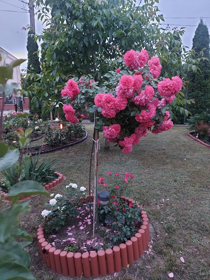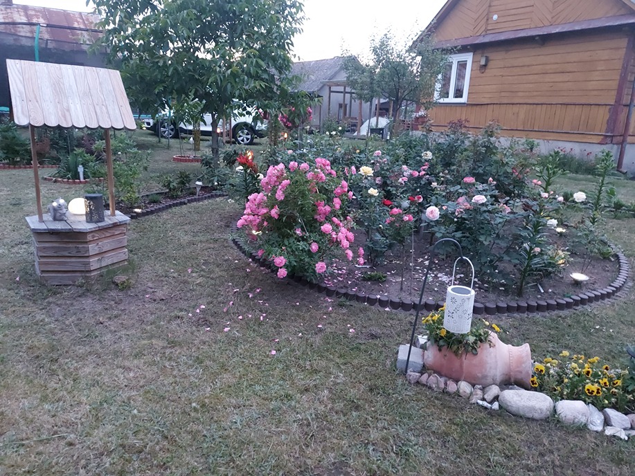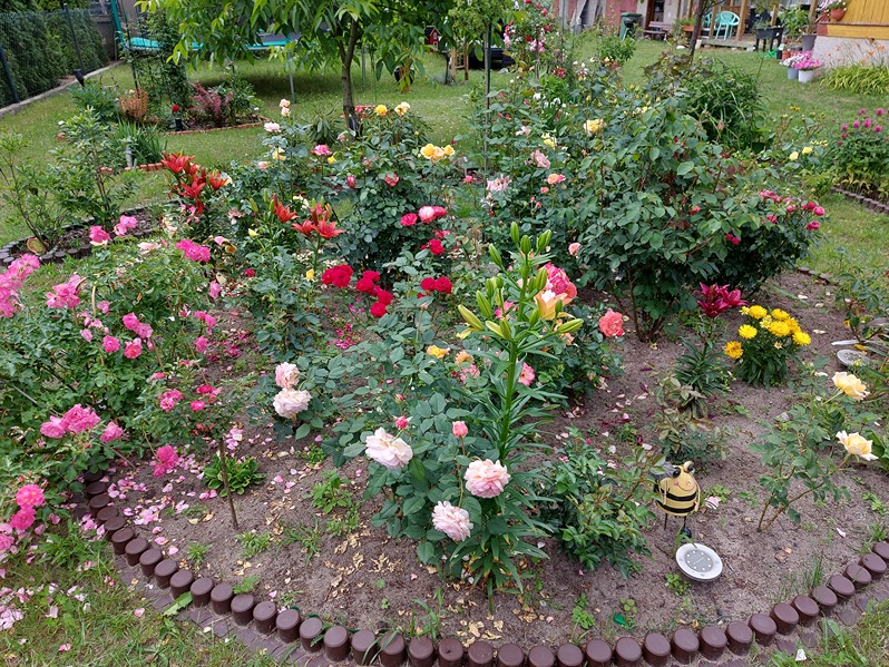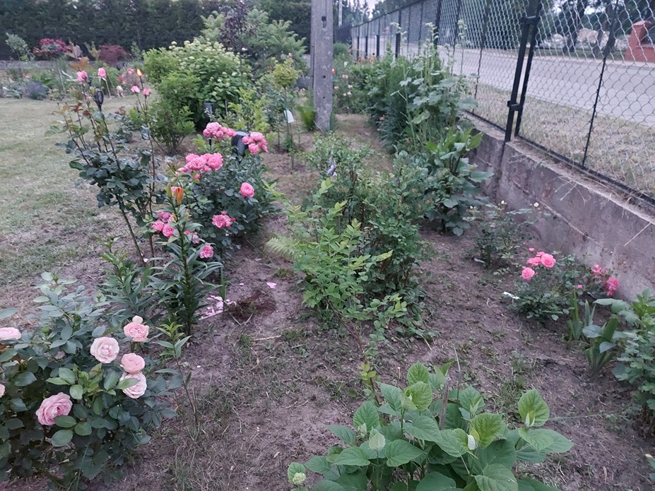 Przygodę z ogrodem rozpoczęłam 2 lata temu od róży Leonadro da Vinci i kilku sztuk hortensji. Od tego czasu ciągle dosadzam, przesadzam, poszerzam rabaty i marzę o pięknym wiejskim ogrodzie w angielskim stylu. Na zdjęciach są różne rodzaje róż, przeważnie NN. Pięknie powtarzają kwitnienie, choć w tych tegorocznych upałach nie jest im łatwo. Ogród nie jest duży, ale dla mnie najpiękniejszy. Podziwianie go w różnych porach roku, daje mi ogromną satysfakcję i pomaga zregenerować siły po ciężkich dniach pracy. Łatwo nie jest, ponieważ mój kawałek nieba, znajduje się 86 km od mojego stałego miejsca zamieszkania. Jestem tam jednak w każdy możliwym wolnym czasie. Kocham to miejsce.