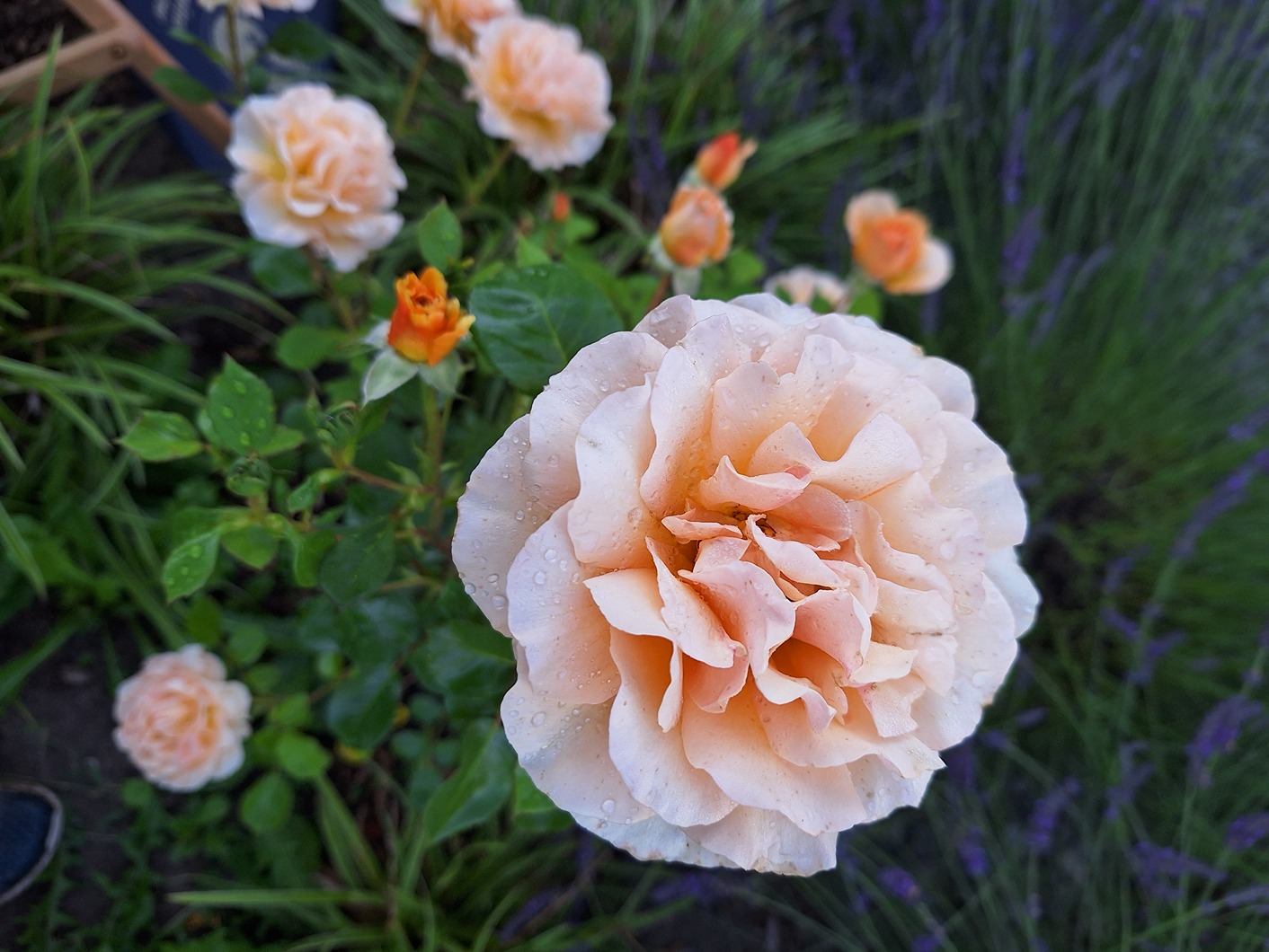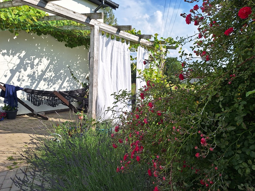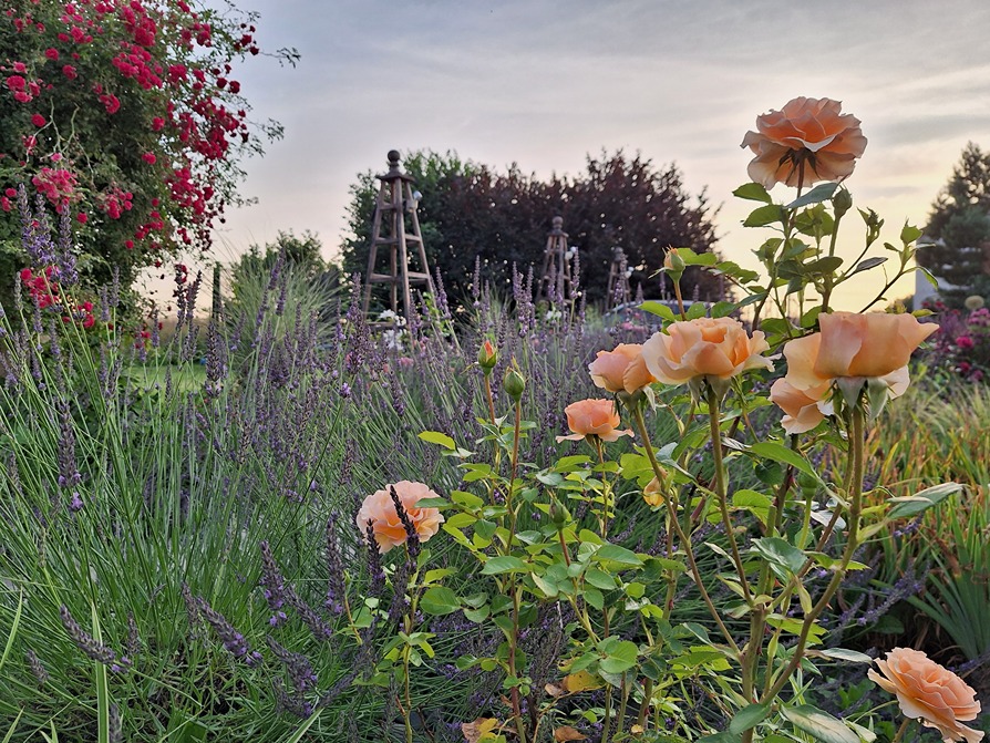 Przybywa róż, przybywa różanych rabat i nowych nasadzeń bylinowych w ich bezpośrednim sąsiedztwie. Pomimo powszechnej opinii, że róże nie lubią towarzystwa innych roślin, przeplatam różanki szałwiami, bodziszkami, lawendami, liliami, trawami… Zmieniam koncepcję, przesadzam, dodaję coś nowego, żeby efekt zachwycał.