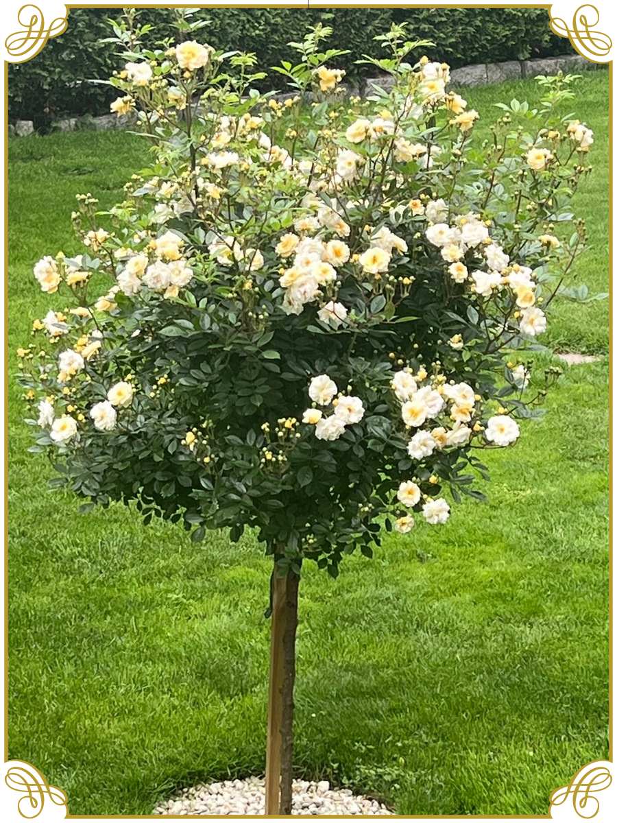 BIAŁA RÓŻA NA PNIU O MAJESTATYCZNIE ZWISAJĄCYCH PĘDACH
