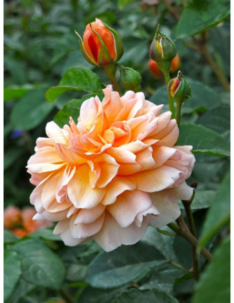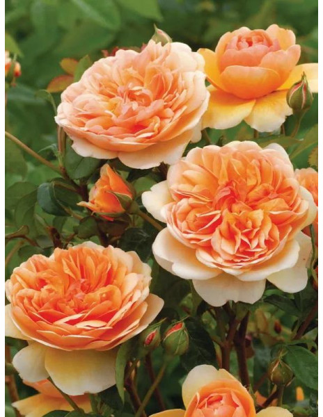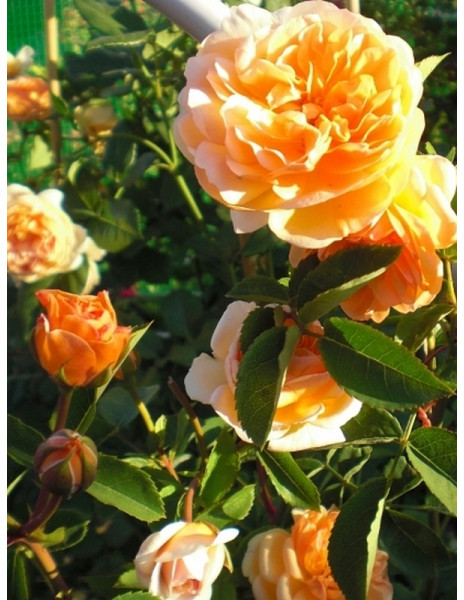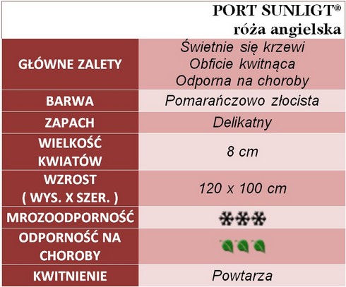 Niezwykła róża o niezwykłej urodzie, która z łatwością przyciąga spojrzenia. Liczne płatki układają się w gęste, symetryczne rozetki, które z dnia na dzień stają się coraz bardziej zachwycające. Zewnętrzne płatki delikatnie zagięte, podczas gdy wewnętrzne są subtelnie otwarte - prawdziwa uczta dla zmysłów. Kwiaty tworzą mieszankę ciepłych odcieni pomarańczy i złocistej żółci. Każdy nowy pączek przyciąga uwagę intensywnością kolorów, podczas gdy starsze kwiaty przechodzą w cieplejsze, złociste odcienie - niesamowita gra barw! Wyczuwalna nuta bananów i cytryny w połączeniu z aromatem herbaty - zapach lekki, ale pełen głębi, słodyczy i delikatnej świeżości. Swoje kwitnienie rozpoczyna jako jedna z pierwszych w ogrodzie. Kwiaty ulokowane zwykle pojedyńczo na pędach, bądź w małych gronach - dzięki czemu nadaje się do bukietów. Kwitnie obficie, a także świetnie powtarza kwitnienie w przeciągu sezonu. Róża angielska Port Sunlight osiąga 120 cm wysokości, tworząc zwarty, dobrze ukształtowany krzew o szerokości do 100 cm. Zdrowy i zadbany wygląd nadają roślinie ciemnozielone, błyszczące listki z wyraźnym unerwieniem. Ponadto pięknie kontrastują z delikatną barwą płatków. Pędy posiada elastyczne, ale solidne, dzięki czemu krzaczek rozrasta się poziomo, tworząc pełne kwiatów kępy. Uwielbia stanowiska słoneczne. Wykazuje się świetną odpornością na choroby grzybowe oraz bardzo dobrą mrozoodpornością, co czyni ją stosunkowo łatwą w pielęgnacji.
