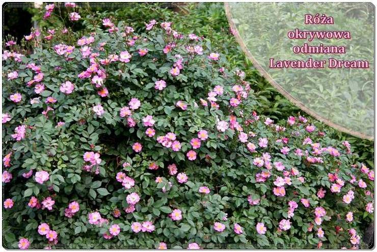 Wszyscy różani miłośnicy z czasem próbują komponować swoje ulubione róże z innymi harmonijnymi gatunkami roślin. Do nich w pierwszym rzędzie zalicza się lawenda. Niespodziewanie można odkryć, że w naszym klimacie może być jednak łatwiej hodować róże niż lawendę. Odmiana Lavender Dream z powodzeniem ją zastąpi. Liczne drobne kwiatuszki nie konkurują z pięknymi mieszańcami herbatnimi a tworzą niebieskawą mgiełkę będąc akwarelowym tłem dla róż o dobrych jakościowo kwiatach. Ta odmiana jest bardzo delikatna z wyglądu ale niesamowicie mało wymagającą w obejściu różyczką. Szybko narasta. Kwitnie praktycznie ciągle. Od 10 do 20 sztuk kwiatków w kwiatostanie to norma, czasem potrafi być ich nawet do 50 szt. Płatki o sercowatym kształcie, u nasady jaśniejsze. Kwiaty z początku jasno - różowo - fioletowe z wiekiem wypalają się do jasno - lawendowo - różowych ze złocistymi pręcikami w centrum. Liście drobne, ciemnozielone, pędy kłujące. krzewy dość gęste, krzaczaste z tendencją do przewieszania się. Pod względem wzrostu odmiana wyjątkowo mocno reaguje na warunki klimatyczne. W krajach o ciepłym klimacie to róża parkowa dorastająca nawet do 2 metrów wysokości. W naszych warunkach rzadko przekracza 1 metr i jest różą okrywową. Kwiaty odporne na deszcz, zapach wyczuwalny. Całkowicie odporna na czarną plamistość, rzadko porażana przez mączniaka. Wymaga okrycia tylko mroźne a bezśnieżne zimy. Strefa USDA 5b.