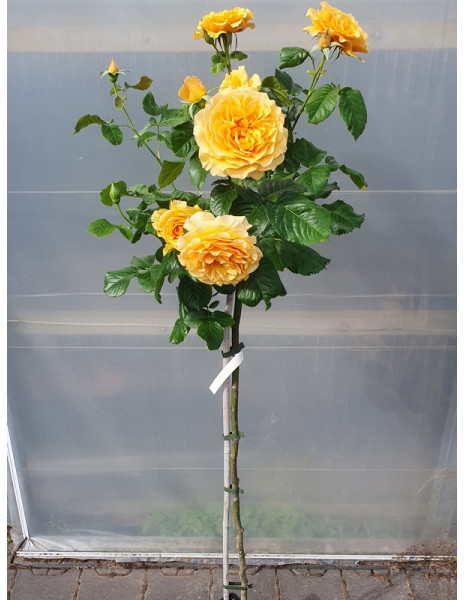 RÓŻE PIENNE Z BUJNYMI KWIATOSTANAMI ŻÓŁTYCH KWIATÓW Z JAŚNIEJSZYMI OBRZEŻAMI PŁATKÓW