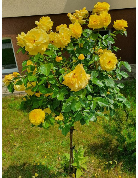 Jest połowa października a ta róża nadal kwitnie, piękne duże kwiaty imtensywnie żółte