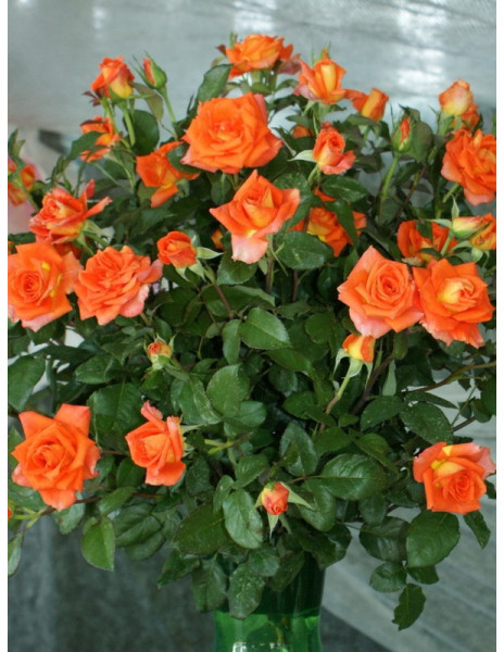 Jest to jedna z niewielu odmian sprawująca się dobrze zarówno w uprawie szklarniowej jak i gruntowej. Kwiaty maja więc kształt i formę taki jaki widzimy u nowoczesnych róż w kwiaciarniach. Pomarańczowo - miedziane wewnętrzne płatki kontrastują z kremowo - żółtymi rewersami. Kolor kwiatu w miarę rozwoju staje się bardziej jednolity. To nasycone zabarwienie dobrze utrzymuje się i nie blaknie na słońcu. Liczne kwiaty pojawiają się przeważnie pojedynczo, na bardzo długich pędach, dzięki czemu jest to świetna odmiana na kwiat cięty. Kwiaty trwałe i długo nie osypują się. Można nimi ozdabiać nasze mieszkania, użyć na prezent. Liście ma ciemne, błyszczące, odporne na choroby. Przy dobrej pielęgnacji w pełni lata przy kolejnym kwitnieniu krzewy osiągają spokojnie wysokość 1,5 m. Jak wszystkie odmiany wielkokwiatowe rokrocznie, wiosną przycinamy je przy samej ziemi zostawiając tylko kilka najniższych oczek.