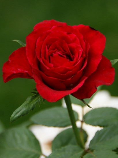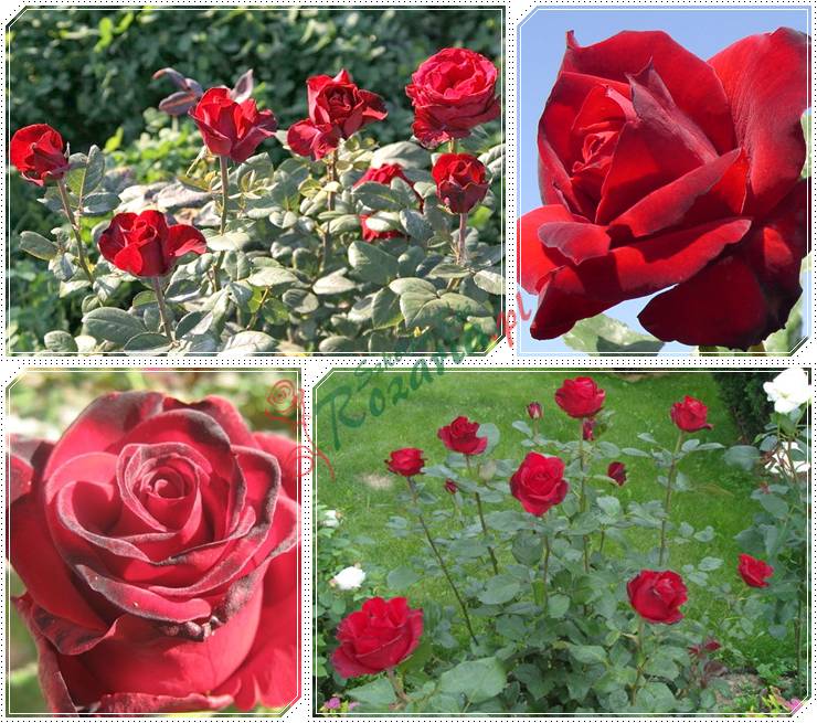Jedna z ulubienic! Piękność o bordowych pączkach i mocnym kolorze rozwiniętych kwiatów. Zbudowane są z mniej więcej 40 płatków, wspaniałej formy o średnicy przekraczającej 10 cm. Długie pędy jak u róży szklarniowej z ciemno - zielonymi liśćmi i niedużymi, rzadko rozmieszczonymi kolcami zwieńczone są pojedyńczymi kwiatami. Na krzaku pozostają ponad dwa tygodnie. Ścięte do wazonu i przez tydzień nie osypują się nawet jak nie zmieniamy im wody. Przyjemnie pachną. Kwiaty dobrze znoszą deszcz. Wskazana profilaktyczna ochrona przed chorobami grzybowymi jak i na zimę lepiej okopczykować.