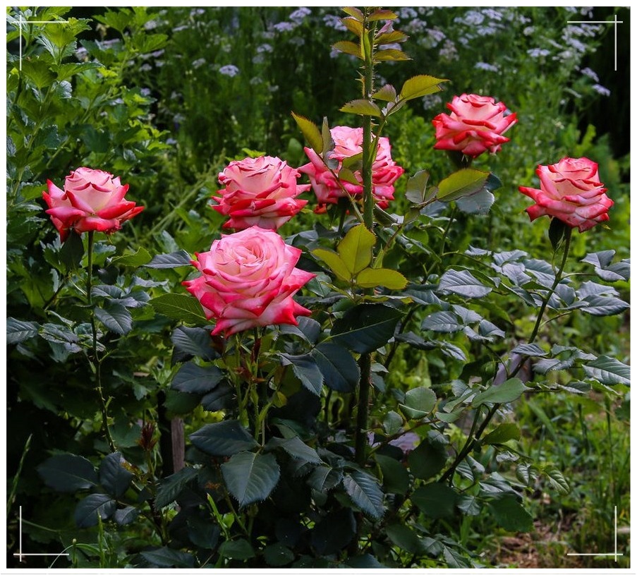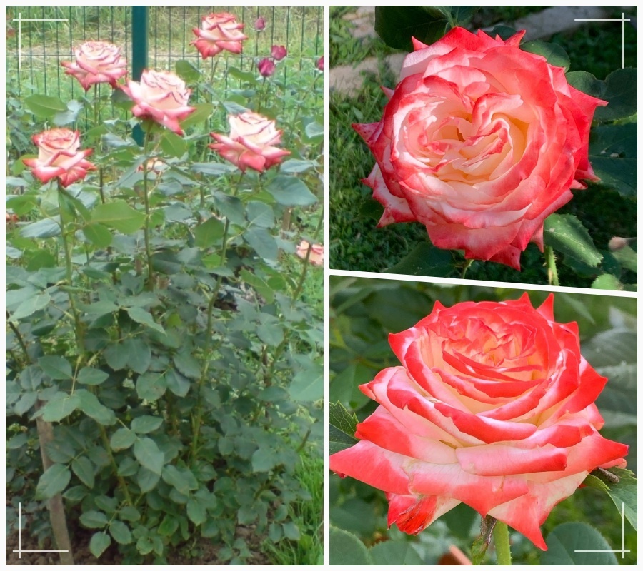 Ta odmiana róży nie może nie zachwycać urodą i niezwykłym zestawieniem kolorów. Prezentuje takie nienatrętne piękno i delikatność, można powiedzieć, im dłużej się jej przypatrujesz, tym większą zwracasz uwagę na jej wdzięk i subtelność. Eleganckie połączenie białego i pąsowo – czerwonego, rzadko spotykane wygięte na zewnątrz płatki, ufarbowane przez karmin ich odgięte koniuszki, słaby ale uchwytny aromat niepowtarzalnego połączenia róży i jabłka, długotrwałe i obfite kwitnięcie, nasycone zielone liście … wszystko to bierze w niewolę licznych miłośników róż. Właśnie tej odmianie poświęca się wiele uwag na forach hodowców kwiatów w poprzek całego świata. Robią wrażenie duże, bardzo trwałe kwiaty o średnicy dochodzącej do 13 cm. Pojawiają się one zazwyczaj pojedynczo, z rzadka w grupach do 5 szt., na długich pędach, wyśmienicie nadając się do ścinania. Z początku pączki wyglądają na malinowe ale w trakcie rozwoju kwiaty robią się bardziej białe. Przy czym raczej ciężko tu zastosować termin « wypalają się », po prostu z wiekiem kwiaty jaśnieją. Kontrast między białymi płatkami a ich malinowymi brzegami wygląda atrakcyjnie we wszystkich stadiach rozwoju. Pigmentowe zabarwienie i odcienie kwiatu silnie zależą od ilości padającej na nich światła słonecznego jak również pogody, ekspozycji na krzaku a nawet pory dnia. Krzak wzniosły, stopniowo rozszerzający się od góry do dołu, z gęstymi liśćmi na wszystkich kondygnacjach i kwitnięciem w zasadzie górą. Kolce z rozległą podstawą, z lekkim odchyleniem na dół, jasne, na pędach pierwszego rzędu duże i drobne ale gęste. Liście średniego rozmiaru, lekko błyszczące.