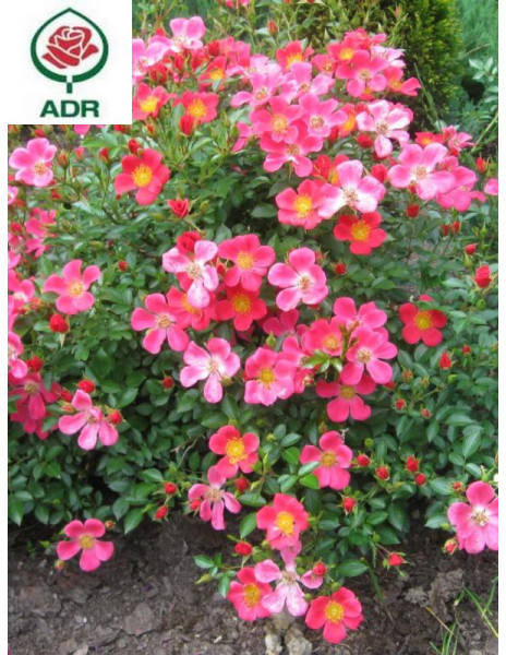 Róża z certyfikatem ADR odporna na niekorzystne warunki atmosferyczne, o pięknej wyrazistej barwie kwiatów.