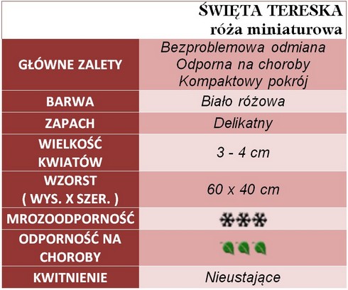 ŚWIĘTA TERESKA róże miniaturowe gł. zal