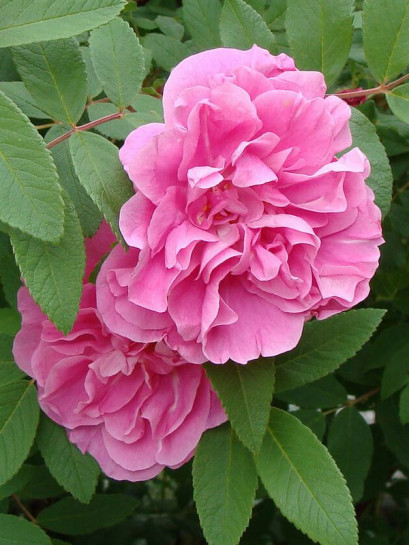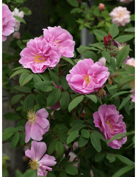 Kanadyjska hybryda Rugosa, która stała się symbolem wytrwałości i piękna w najtrudniejszych warunkach. Stworzona przez Georges’a Bagneta w 1950 roku, powstała z myślą o przetrwaniu surowych zim Alberta w Kanadzie. Dzięki starannemu doborowi rodzicielskich gatunków, róża kanadyjska Therese Bugnet  zdobyła reputację wyjątkowo mrozoodpornej, tolerując temperatury nawet do -35°C. Dodatkowo jej odporność na zanieczyszczenia, choroby i niekorzystne warunki glebowe sprawia, że jest jednym z najbardziej niezawodnych wyborów do ogrodów w chłodniejszych strefach klimatycznych. Krzew wyróżnia się nie tylko swoją odpornością, ale także imponującym wyglądem. Może dorastać nawet do 250 cm wysokości, osiągając szerokość około 120 cm. Jego pędy są wyprostowane, długie i niemal pozbawione kolców, dlatego jest szczególnie atrakcyjny, gdyż Rugosa zwykle cechują się licznymi cierniami. Liście są matowe, wiosną brązowe, latem szaro-zielone, a jesienią przebarwiają się na ciemnożółty kolor, fakt ten dodatkowo podkreśla jej urok przez cały rok. Najbardziej oszałamiającym elementem są jednak kwiaty. Półpełne, o delikatnych, falistych płatkach w odcieniach różu, które początkowo są czerwonawo-różowe, by stopniowo blednąć do subtelniejszego odcienia. Kwiaty przypominają kształtem starodawne, antyczne wręcz róże, z falującymi, pomarszczonymi płatkami, które ułożone są w naturalny, lekko chaotyczny sposób, jakby rozczochrane przez wiatr. Każdy kwiat składa się z 30-40 płatków i osiąga średnicę około 7-8 cm. Choć kwitnie obficie od wczesnego lata do późnej jesieni, szczególnie imponuje wiosną, kiedy jako pierwsza otwiera swoje pąki w ogrodzie. Pięknie pachnąą, mocnym, słodkim zapachem, który przyciąga zapachami do ogrodu. Kwiaty pojawiają się w niewielkich grupkach po 3-5 sztuk, tworząc efektowną fontannę barw i zapachów. Co ciekawe, róża kanadyjska Therese Bugnet jest bardzo łatwa w uprawie. Toleruje słabe gleby i półcień. Jest również odporna na mączniaka i czarną plamistość, a jej pielęgnacja ogranicza się głównie do regularnego cięcia i usuwania przekwitłych kwiatów. Dzięki wyjątkowej zimotrwałości, nie wymaga specjalnego okrywania na zimę, a jej ozdobne pędy, które jesienią czerwienieją, pięknie komponują się w ogrodzie, szczególnie w okresie zimowym, kiedy na tle białego śniegu stanowią efektowny element krajobrazu.