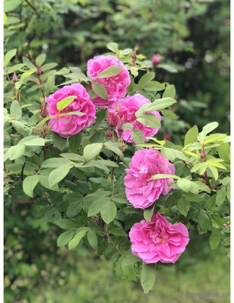 Rośliny rodzicielskie: [(R. acicularis x R. rugosa kamtchatica) x (R. amblyotis x R. rugosa plena)] x 'Betty Bland'