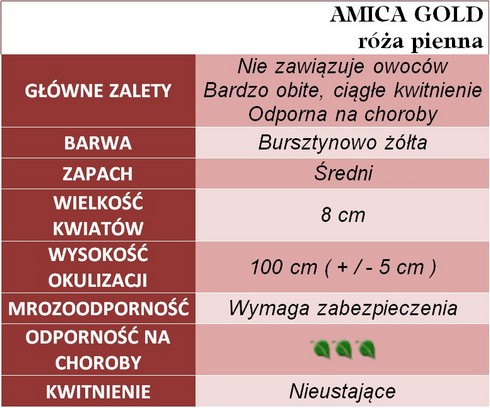 Obficie obsypane kwiatem róze pienne w złocisto - bursztynowym kolorze